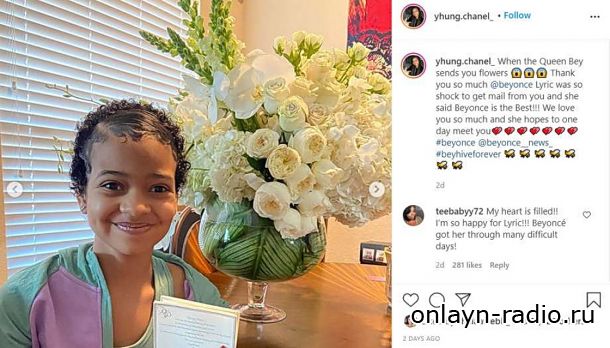 Lyric Chanel, которая борется с раком мозга и анапластической эпендимомой, в воскресенье отправилась в Instagram, чтобы поделиться изображением композиции из белых цветов, подаренной ей суперзвездой.