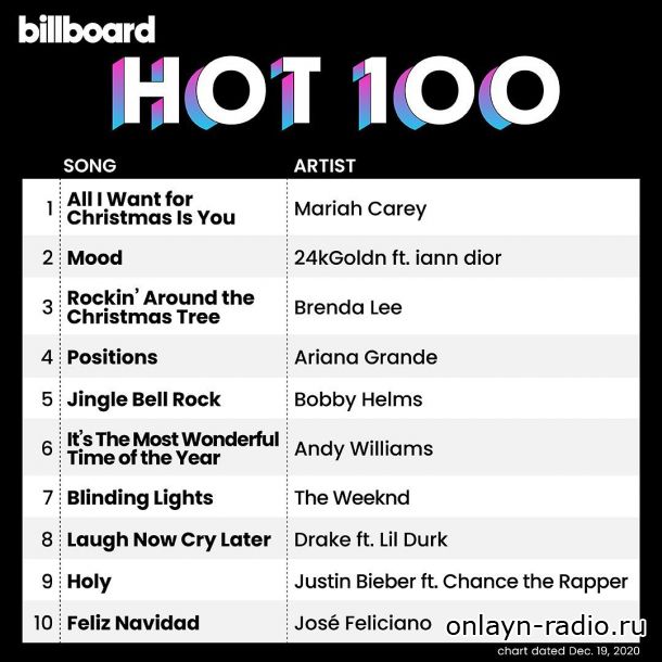 - Мэрайя Кэри наконец-то попала в верхнюю часть американского чарта синглов со своим 25-летним праздничным фаворитом