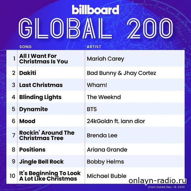 - Мэрайя Кэри вернулась в американские чарты с рождественской классикой