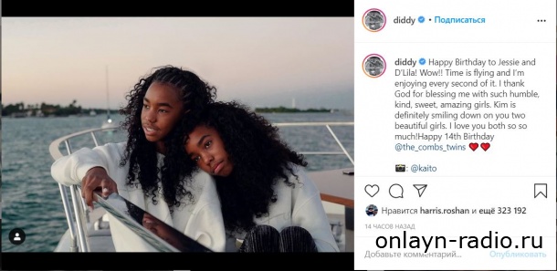 «С Днем Рождения Джесси и Д'Лилу! Ух ты!! Время летит, и я наслаждаюсь каждой его секундой. Я благодарю Бога за то, что он благословил меня такими скромными, добрыми, милыми, удивительными девушками. Ким определенно улыбается вам, двум прекрасным девушкам. Я так сильно люблю вас обоих!С 14-летием», - написал их отец.