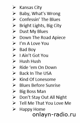 Что играли The Rolling Stones на том первом концерте? В то время группа исполняла практически только репертуар американских блюзменов. Хотя никаких записей не сохранилось, по мемуарам Яна Стюарта удалось воссоздать возможный сет группы, хотя порядок песен, вероятно, неверен. Возможно также, что не все из них были сыграны.